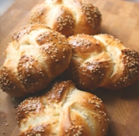 - When rolls have risen, brush with egg glaze and sprinkle with sesame or poppy seeds.