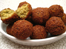 If you like traditional Middle Eastern Falafel substitute 1 cup dried chickpeas for fava beans and add 2 Tblsp fresh cilantro, minced.