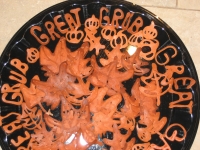 For this year’s Halloween, I served little spiders sitting on top of cobwebs alongside scary ghosts. The kids loved seeing and eating them. (Yes, the attached photo is all cookies!)