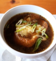 I like this soup, and particularly the onions because when they are cooked in the butter they are fondant and sweet. My mother made this recipe when I was younger but not very often because my sister hates onions so now I make it again and again! In France we eat onion soup after new year celebrations, at 1 o’clock. It’s a real custom and it’s good after you have had a lot of drink.