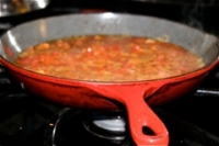 Also, don’t use a cast iron skillet as iron reacts with tomatoes and turns them sour.
