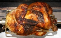 Spit-roasting or rotisserie cooking is a form of roasting by slowly rotating meat or chicken in front of or over a fire. The meat or chicken is placed on a metal spit. Common when all cooking was done at an open hearth, it is not as common today. Spit-roasting is an ideal form of roasting thanks to the slow and constant motion of the spit. Meats tend to cook evenly and are well basted in the drippings.