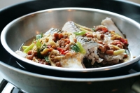 If you are without a bamboo (or any other type of steamer) and you want to steam fish, don’t despair. Simply bring to the boil an inch or so of water in a large saucepan.