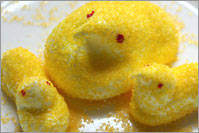 My friend’s twelve year-old daughter had been asking me to show her how to make homemade marshmallow peeps. So, the Saturday before Easter, my kitchen was transformed into peep central. All the ingredients were assembled. The pans, bowls, and assorted equipment were collected and put into place. The kitchen staff, donning aprons, consisted of my wife, the “Pre-Teen”, and myself. The Pre-Teen chose the music – “oldies” from the 1980s – and we were off!