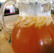 - Add tea bags and mint to empty pitcher. Add the boiling water and let seep for three (3) minutes and then remove tea bags.