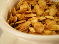 Waste not. I like to roast my pumpkin seeds when I’m making pumpkin puree for pie or have them left over form my Halloween Jack-O-Lantern. Pepitas are a popular ingredient in Mexican cooking, but I prefer to roast them and enjoy them as a snack.