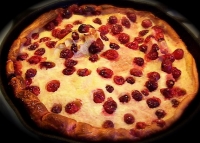 Here is a version just in time for the holidays based on a traditional French custard recipe. The tart cranberries contrast nicely with the sweet custard. This recipe serves about 6.