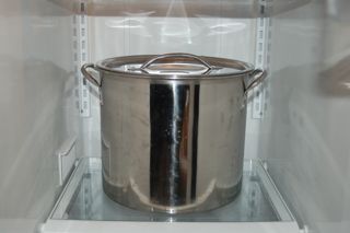 Here are some pictures of my turkey brine which just managed to fit in the fridge with all the other turkey day fixings. In years past I have packed the turkey and brine in a giant trash bag and then put the bag over a bed of ice in an igloo cooler.