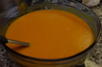 We combined the ingredients, cooked the soup but found it a little too thin in flavour. It needed something to lift it. We poured a little into a bowl and pondered. Finally — in a eureka moment — we both said “orange juice”. We tried it and it was great. I love moments like these.