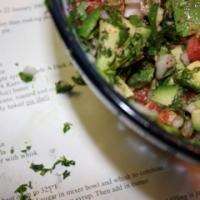 Seeing this recipe I was reminded of Guacamole I had in San Diego. Ingredients are the same as above, but the method is slightly different: