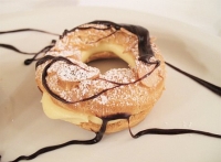Have you ever wanted to drizzle chocolate sauce on a white dessert plate just for decoration? Then, try this recipe. I used this glaze to decorate the dessert I made in class, Gateau Paris-Brest (photo shown at right).
