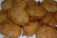 - Dip the shaped mixture in egg white, fry in preheated oil with medium heat until it’s golden brown and ripe.