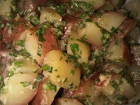 At the farmers’ market this week I stumbled across some great new potatoes, the kind with the red skin. If I knew what they were called I would tell you!