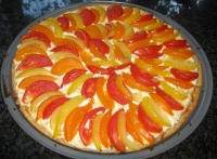 - Slice and remove seeds from tomatoes. Place on pie crust.
