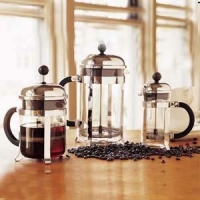 Forget about fancy drip coffee machines. They don’t come near the taste and fail to match the ease of use of the simple old fashioned French Press (cafitiere). The French press provides flexibility in brewing, takes up a fraction of the counter space, is easy to clean and produces a superior cup of coffee.