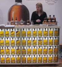 The Glenrothes stand caught my attention. Between the tastings of their fine Speyside malts, I talked to Lucy Drake the Assistant Brand Manager about their display, which is a backlit stand made up of dozens of full bottles. Apparently, it takes time to load the display, but it is worth it; many people were drawn by the visual experience and shared in their wares. The 1994 Vintage in particular excited me; a light, fruity bouquet with a wonderful citrus flavour which went down easily as I found out more about the presentation. Glenrothes whiskies are sold in short dumpy bottles that feel comfortable in the hand and are very tactile. Their shape is based on the distillery sample bottles and have “hand written” labels to maintain a friendly appearance. In the distillery, the distiller labels the sample bottles in this manner with the tasting notes. It was my first experience of being turned on to a whisky by its presentation.